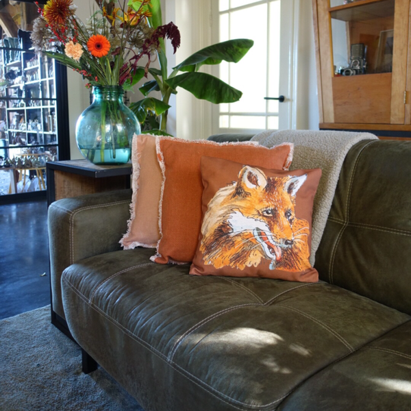 Unieke professionele Art Print op grof geweven 100% katoen. Het kussen is zowel aan de voorkant als achterkant voorzien van print. De kussenhoes heeft een rits, zodat deze gemakkelijk van de kussenvulling kan worden afgehaald om te wassen. Dit sierkussen wordt geleverd met een passende binnenvulling.